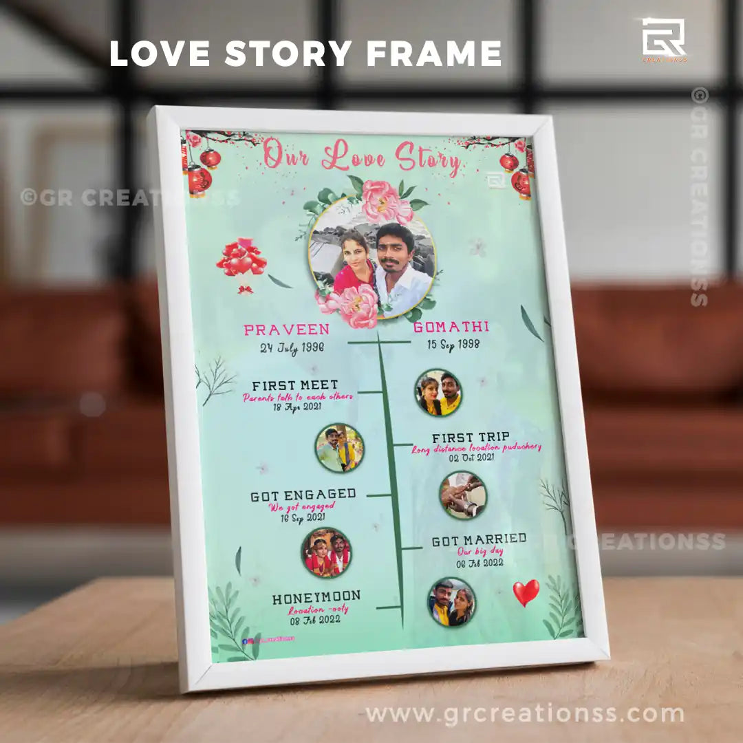 Each romantic journey is a one-of-a-kind tale of love. Immortalize your story with a personalized love story frame that encapsulates all your precious moments in a single, unique design. Showcase your cherished memories with photos and dates that have special meaning to you and your partner.